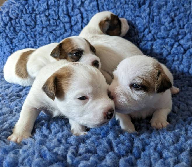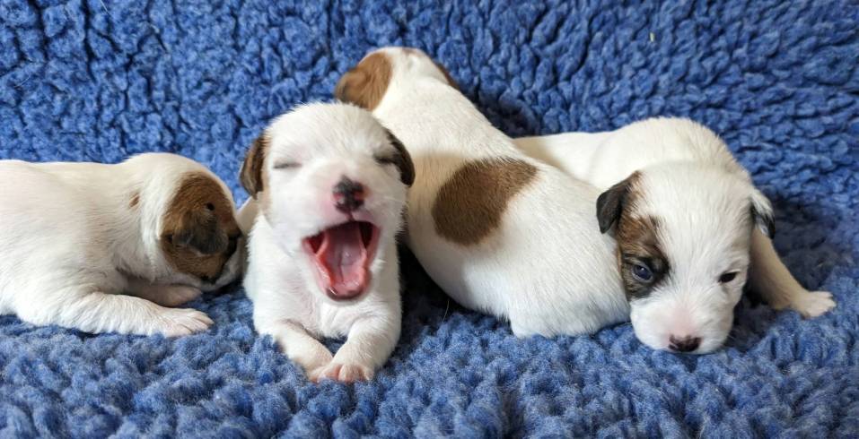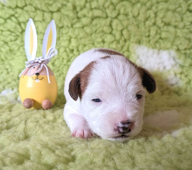 Divine From Shudder Mountain - inzwischen ist sie sieben Wochen alt - sucht noch das passende Zuhause. Sie ist eine lebhafte und quirlige, dabei aber auch sehr liebenswerte, Terrierdame. Wenn Sie Interesse haben, nehmen Sie gerne telefonisch Kontakt zu uns auf.
